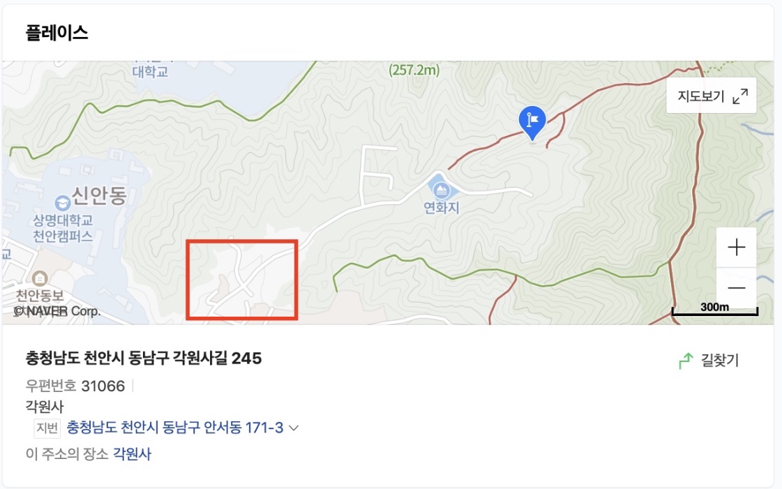 1. 위치 : 충남 천안시 동남구 각원사길 245