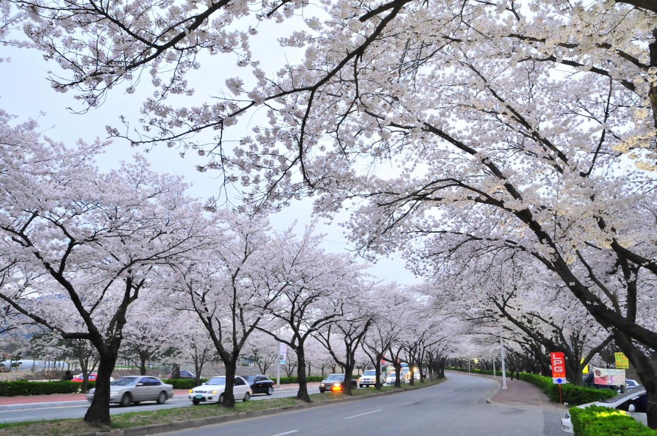 3. 특징 : 충렬사 인근의 노량삼거리부터 문의리까지 1170 그루의 왕벚꽃나무로 이어진 5km 가량의 벚꽃길
